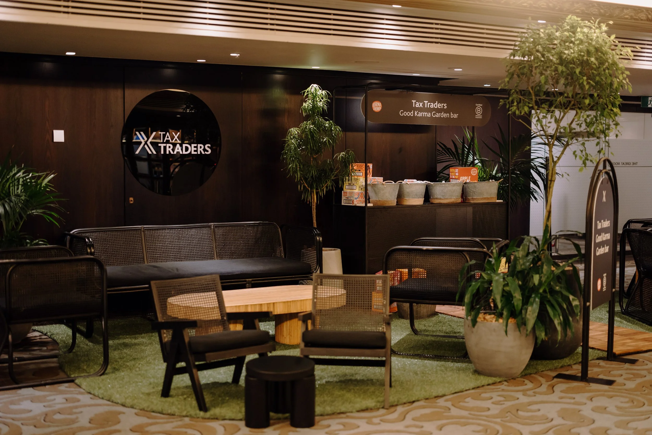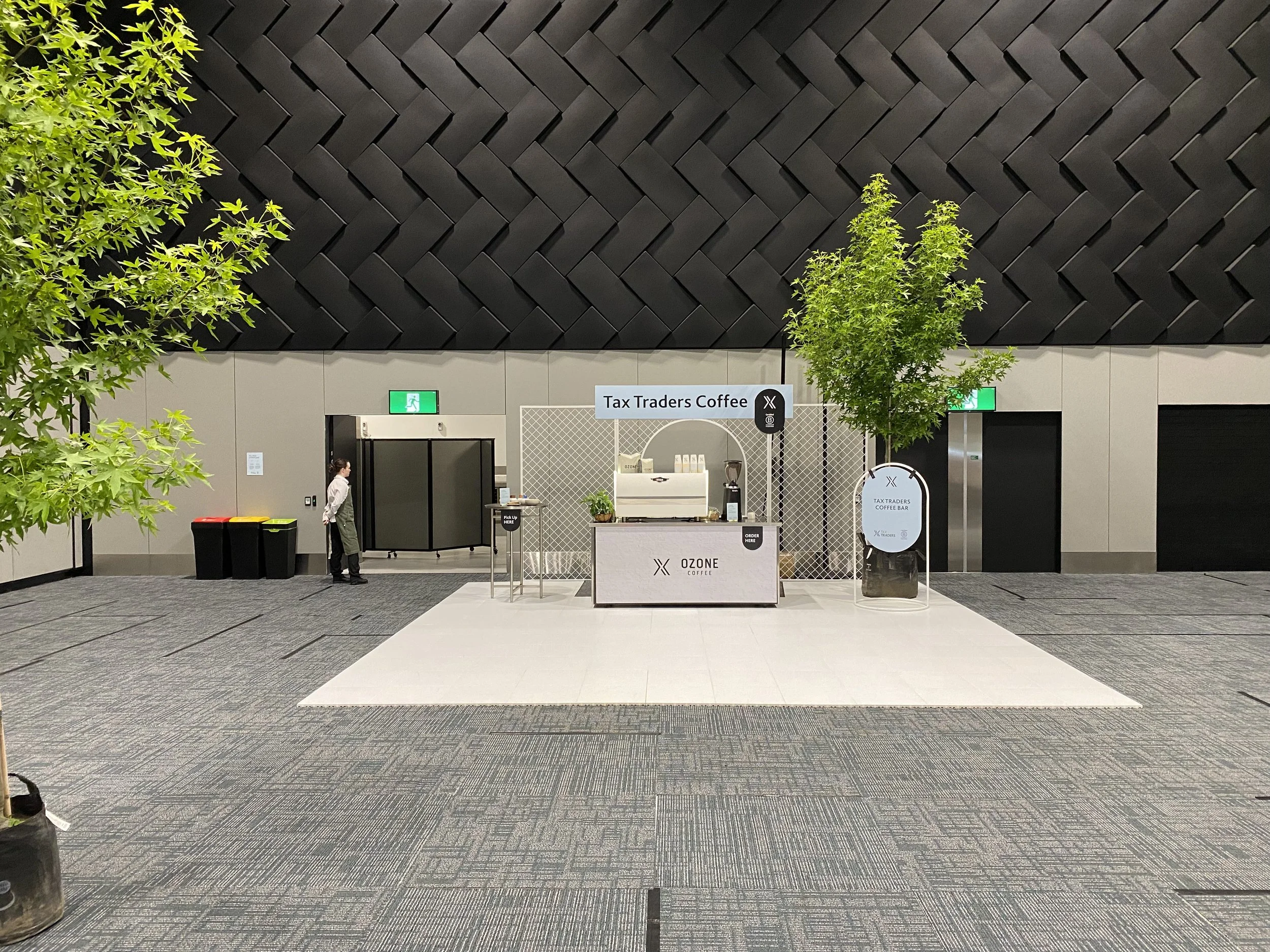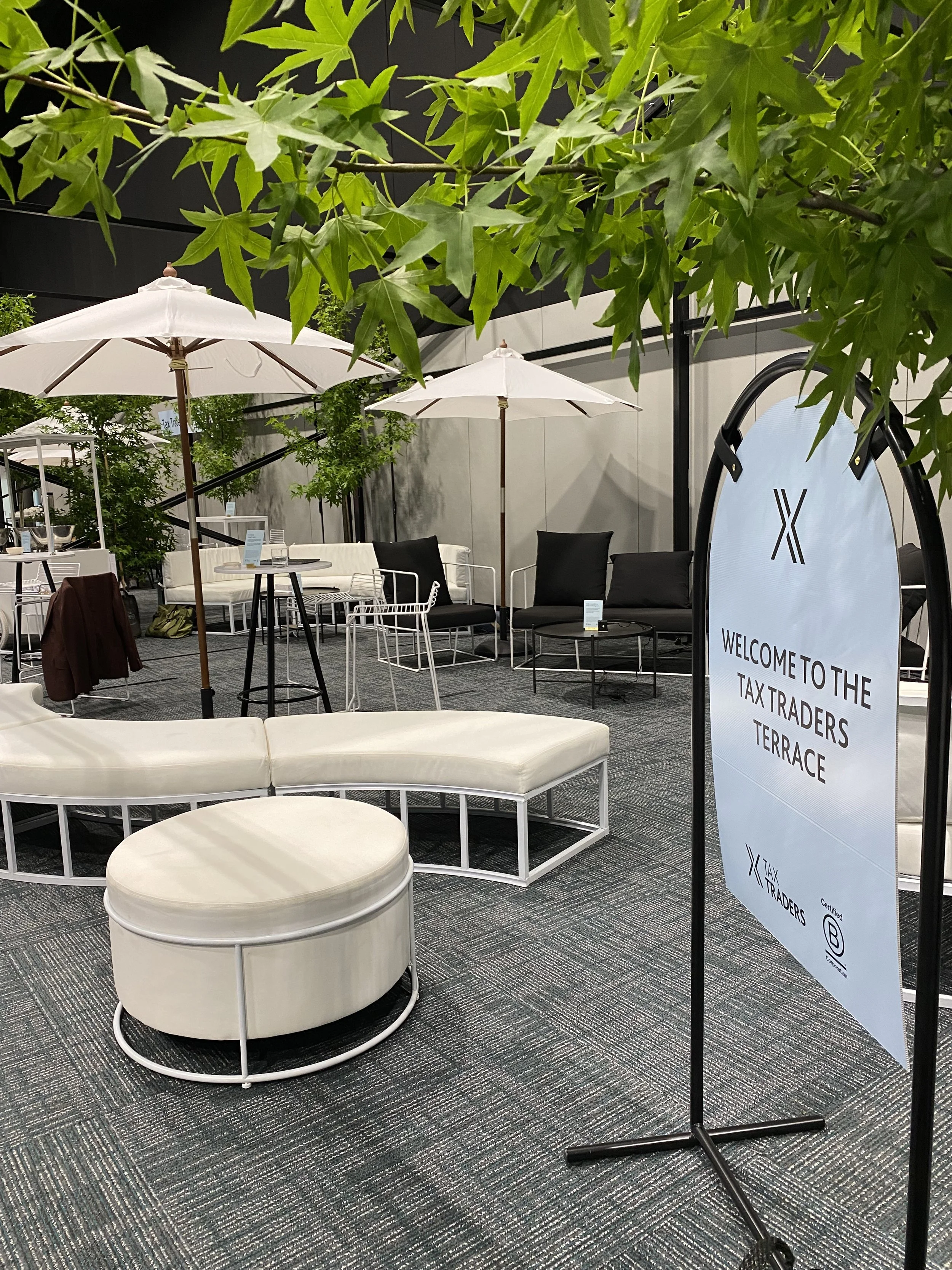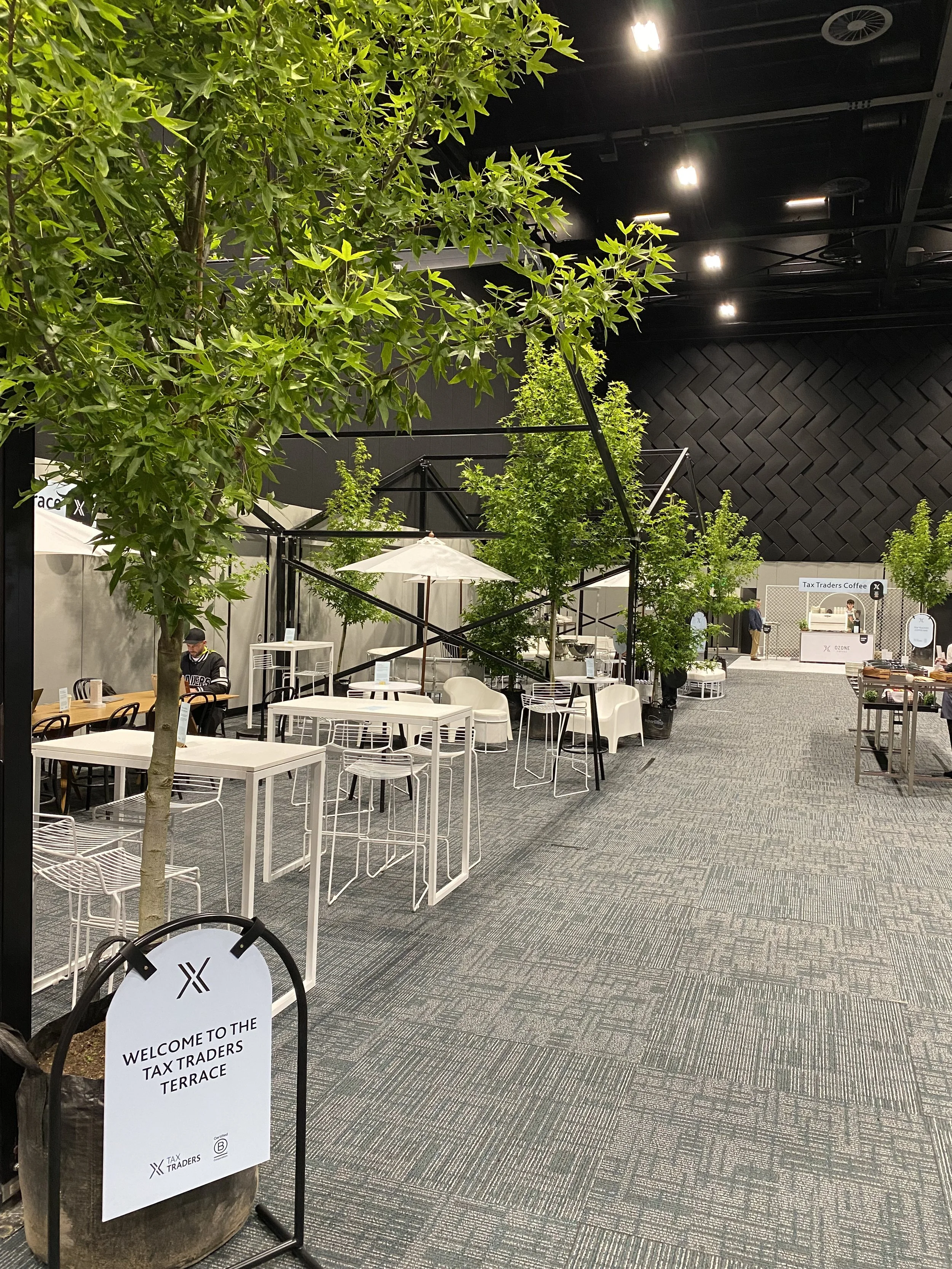 A 3 day conference completely indoors with no natural light or seating during breaks… no problem, we bought the outdoors in, with a 20m marque a frame and 14 9m liquid amber trees.