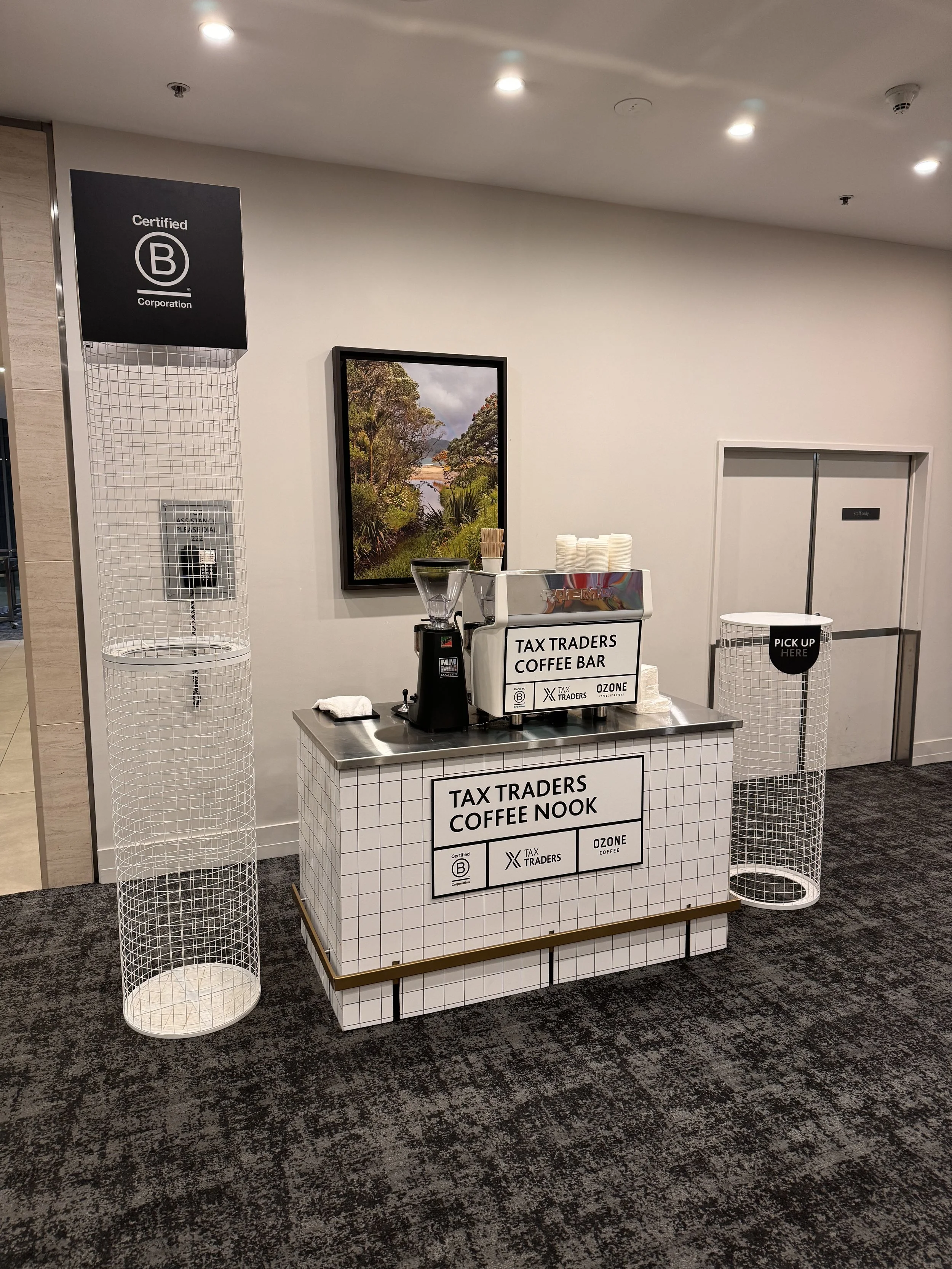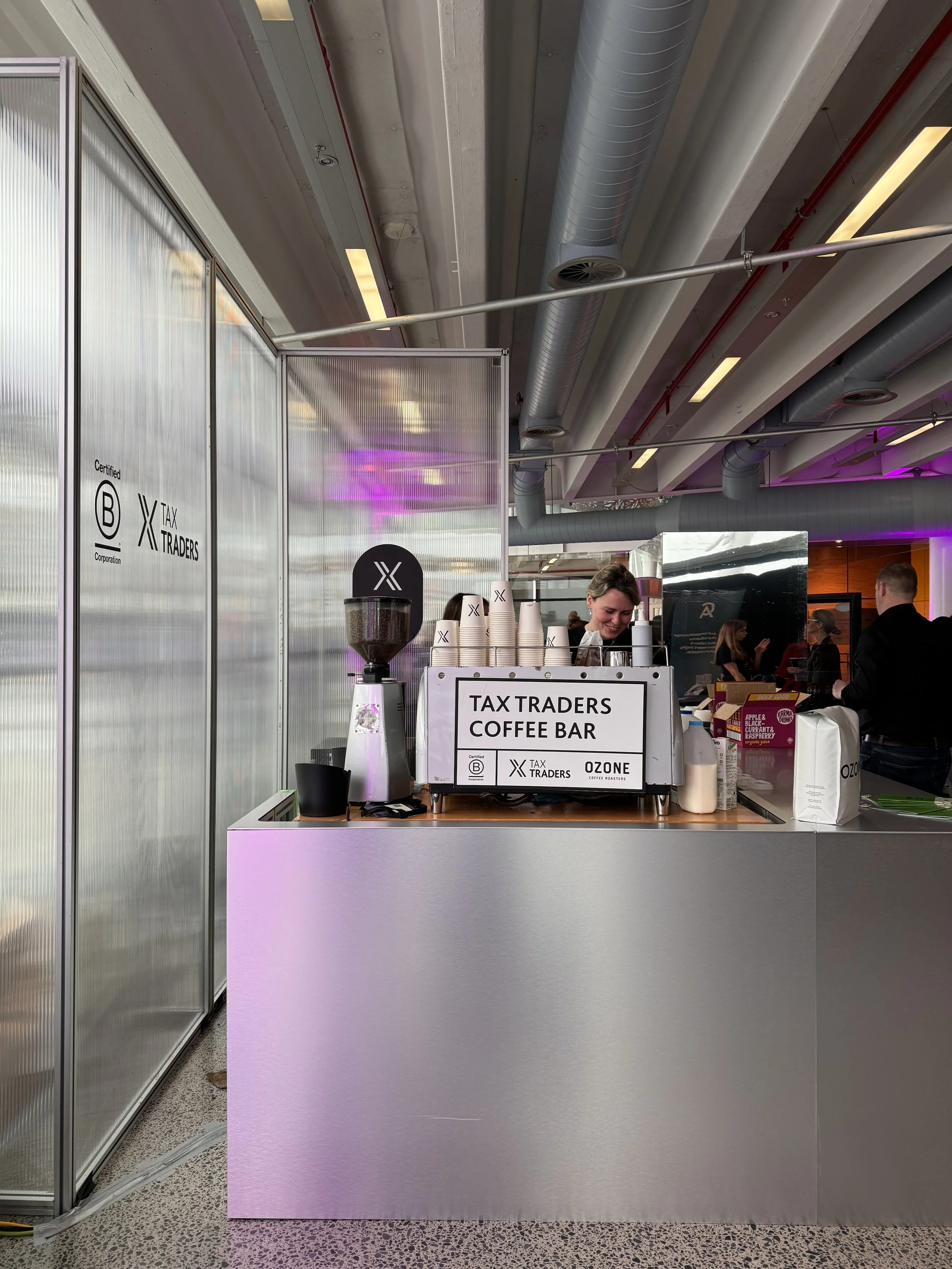 Partnered with Ozone a fellow B-Corp, I build 6-8 different coffee bars each year, B-Corp certified, compostable or reusable assets yet none ever the same.