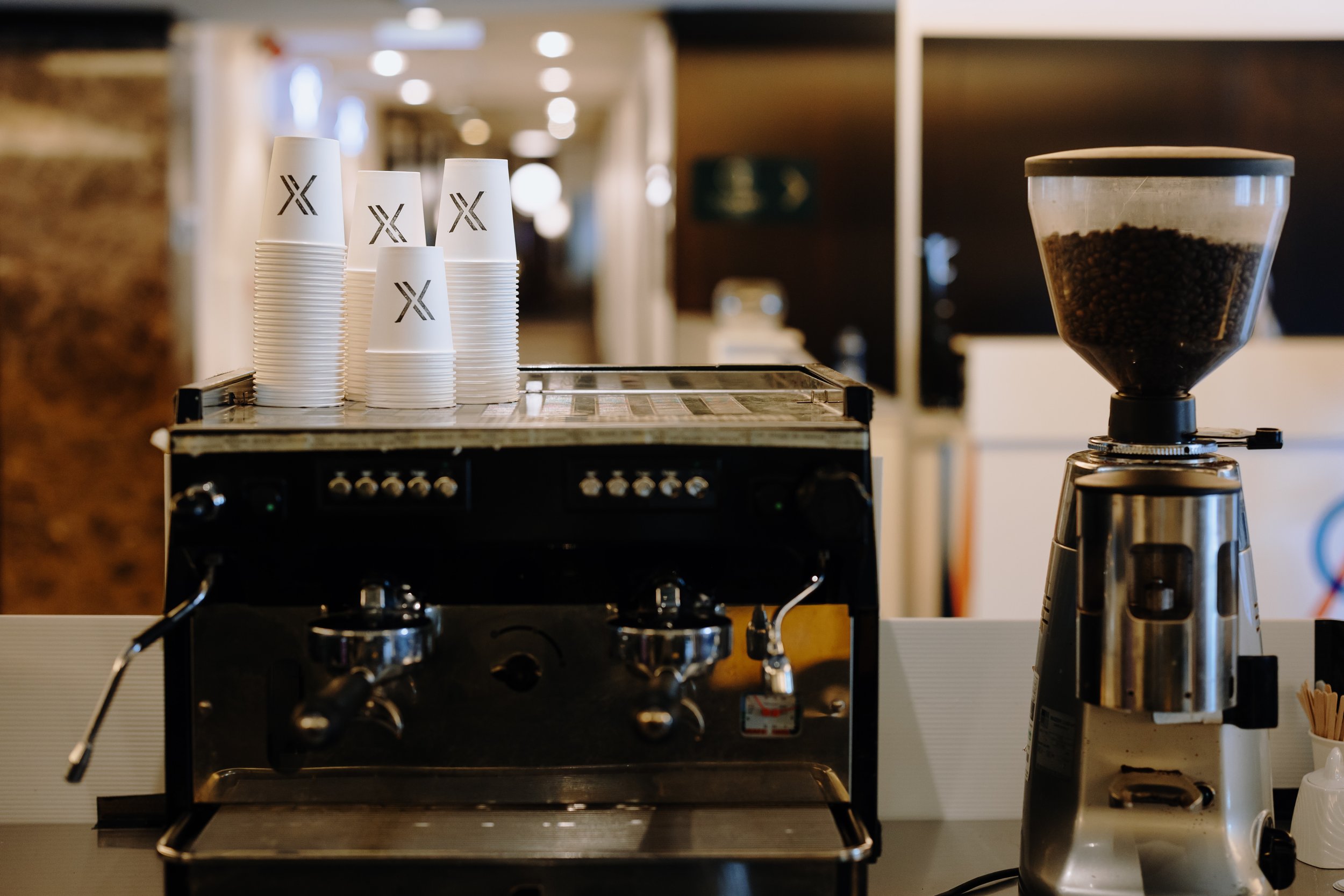 A selection of the mini coffee bars. These are usually in the regions so I had to work with elements I could source on location, creating assets and branding I could fly with and set up on site. Yes this means flying with coffee beans and cups!